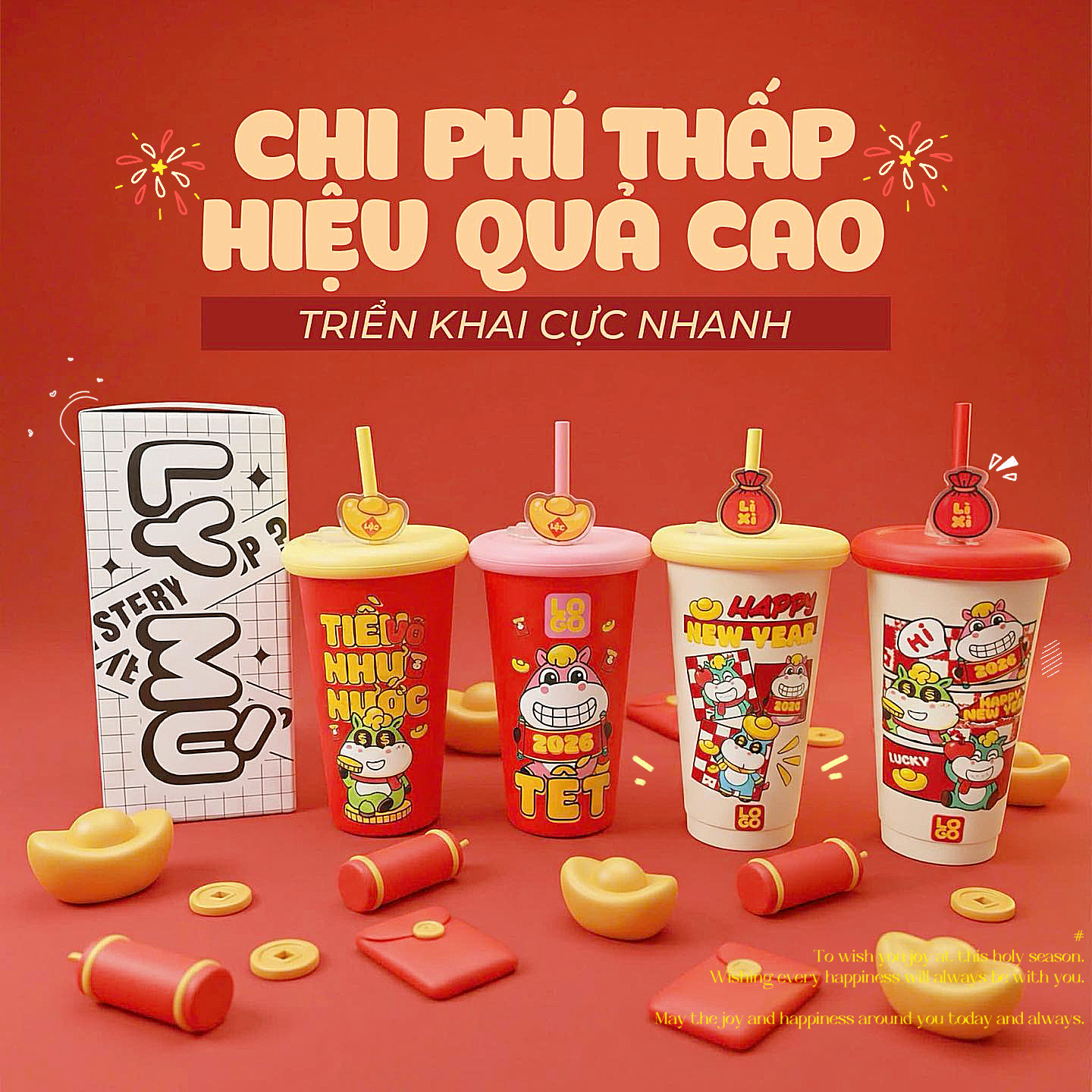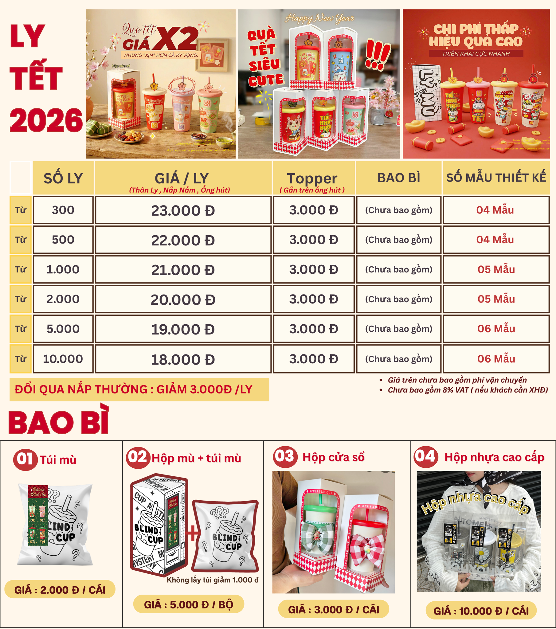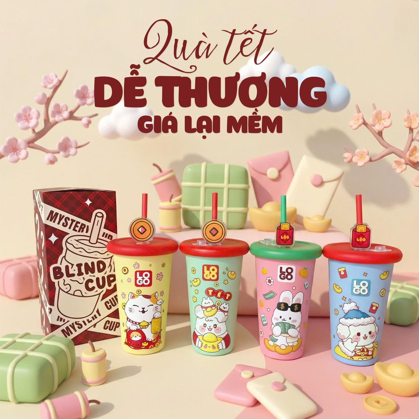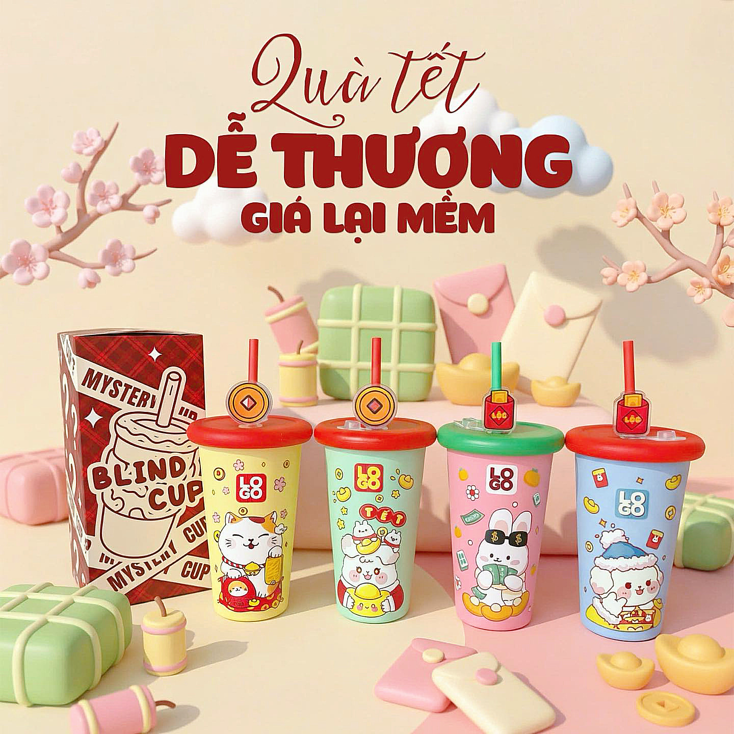Ly In 3D Nổi Hoạ Tiết Tết 2026