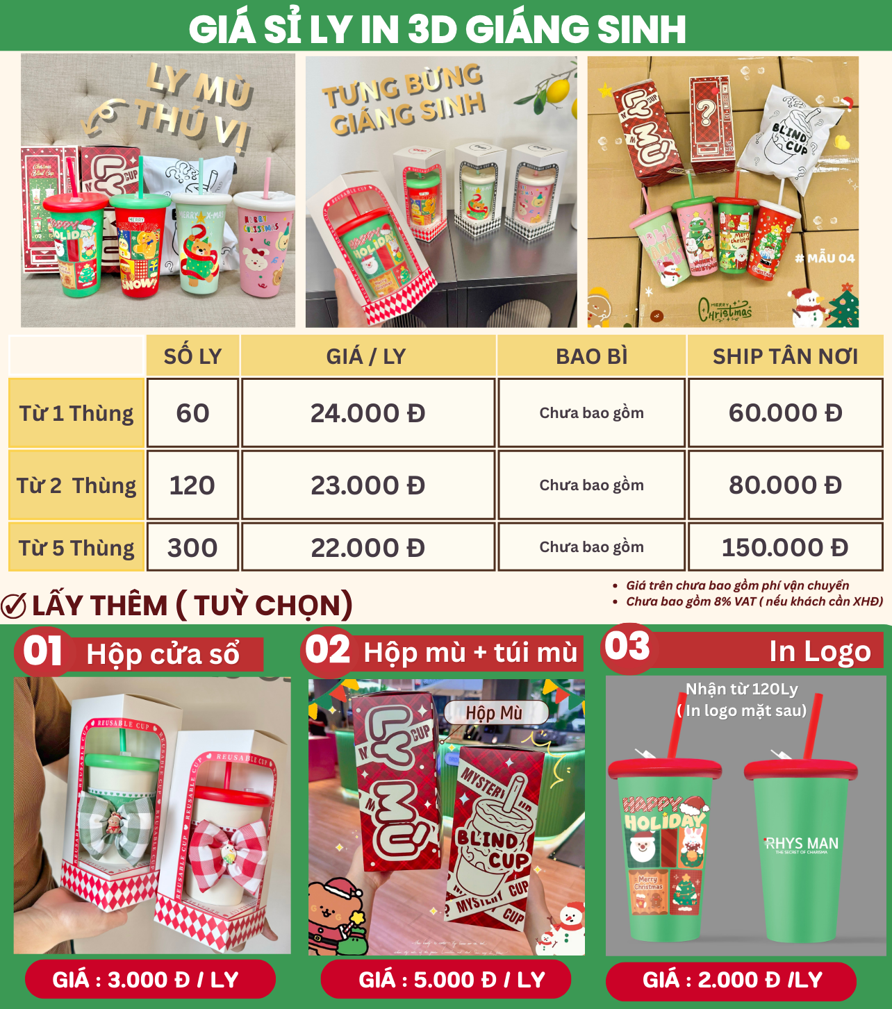 Ly Sỉ Sẵn In 3D Nổi Hoạ Tiết Giáng Sinh Đổi màu