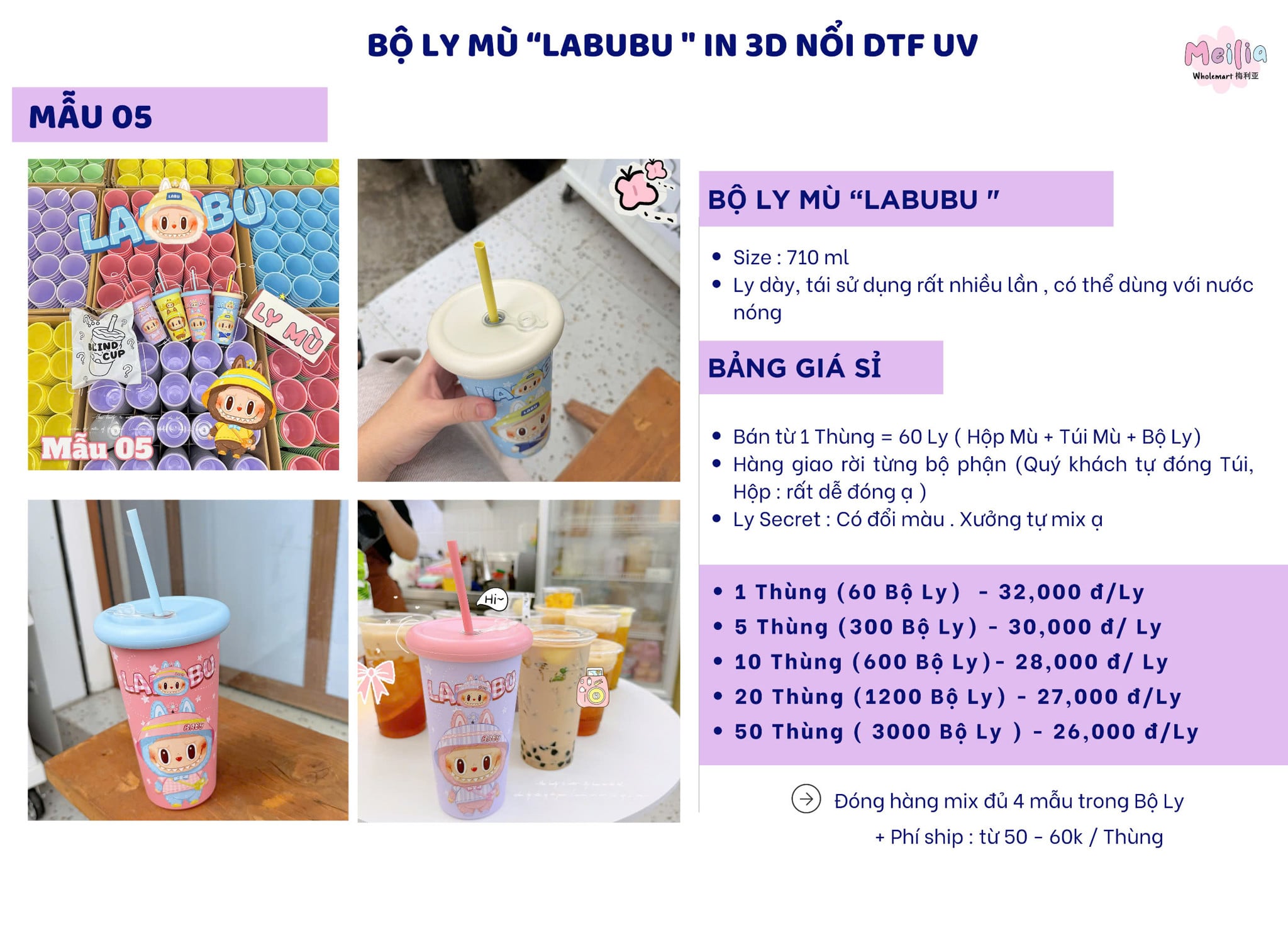 Ly Sỉ Sẵn In 3D Nổi Hoạ Tiết Labubu